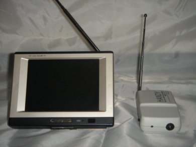 なお飛ばした映像は、13〜62チャンネルのUHF放送帯を受信できるポータブルのテレビで見ることができます。テレビ放送帯を使用しているわけですから、当然テレビで受信できるのです。このように専用受信機を必要としないため、最も手軽な無線カメラであるといえます。