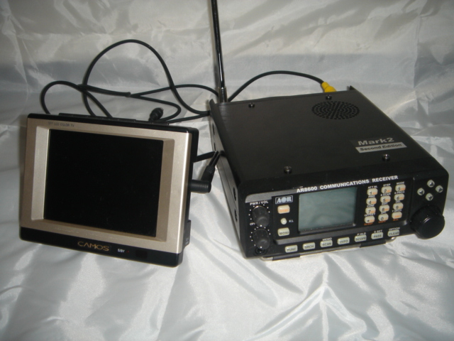 元は無線交信等の音声を傍受するためのものですが、この機種にはTVコンバータが内蔵されており、電波を映像に変換することでTVや無線カメラの映像をモニターに映し出すことができます。